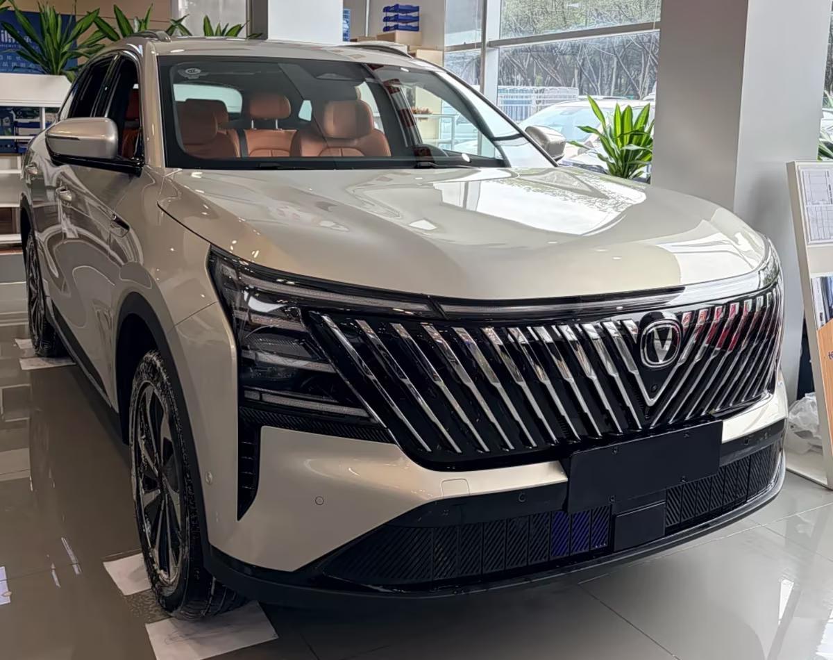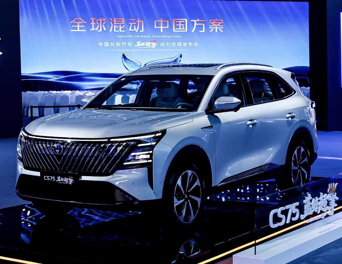 从外观来看,长安CS75 PLUS HEV整车轮廓延续了第四代长安CS75 PLUS的设计,但前脸换装新样式的大灯和前中网,其中贯穿式灯带设计得更加细长,与左右两侧三段式横向布局的灯带相融合,营造出酷似“泪眼大灯”的视觉观感。前中网内部集成大量斜向竖置布局的镀铬装饰条,营造出“V”字形样式,与现款燃油版车型存在明显差异。
