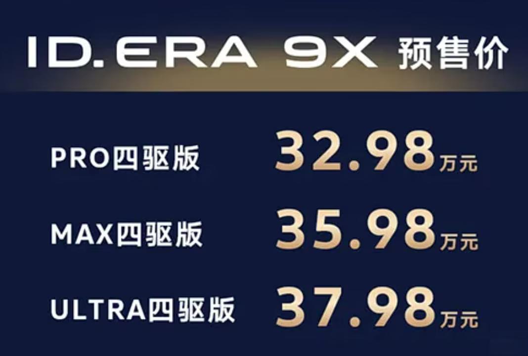 日前,上汽大众首款增程SUV“大众 ID.ERA 9X”正式开启预售,预售价分别是32.98-37.98万元,新车定位是大型SUV,上市后有望与理想L9、问界M8等车型形成竞争关系,将以更低的售价吸引到更多家庭用户的关注,车型计划在4月25日迎来上市。