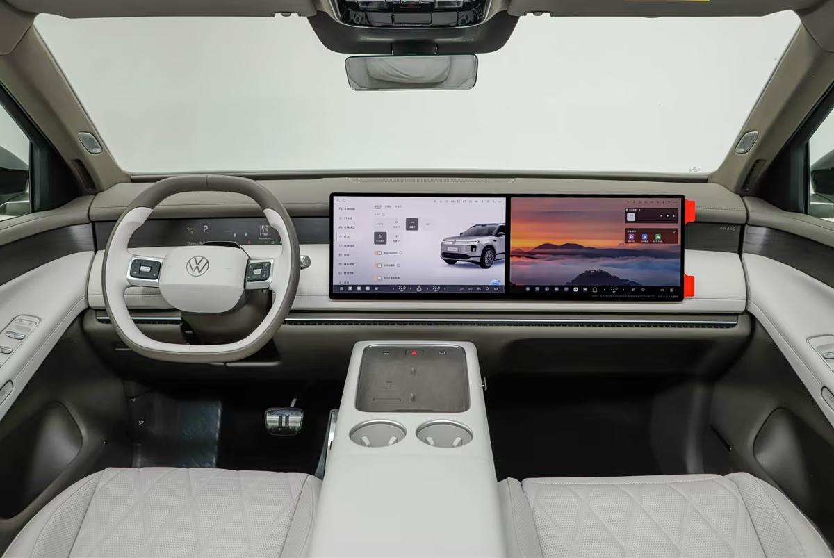 内饰方面,大众ID.ERA 9X也是摈弃了大众家族以往的设计风格,车内换装极简风布局,配备有8.88英寸的内嵌式长条形仪表盘,悬浮式中控屏与副驾娱乐屏组合成“双联屏”,两块屏幕尺寸均为15.6英寸,车内并没有看到过多的物理按键,中控台线条较为平直,预留有手机无线充电面板,多功能方向盘采用了双幅式设计。